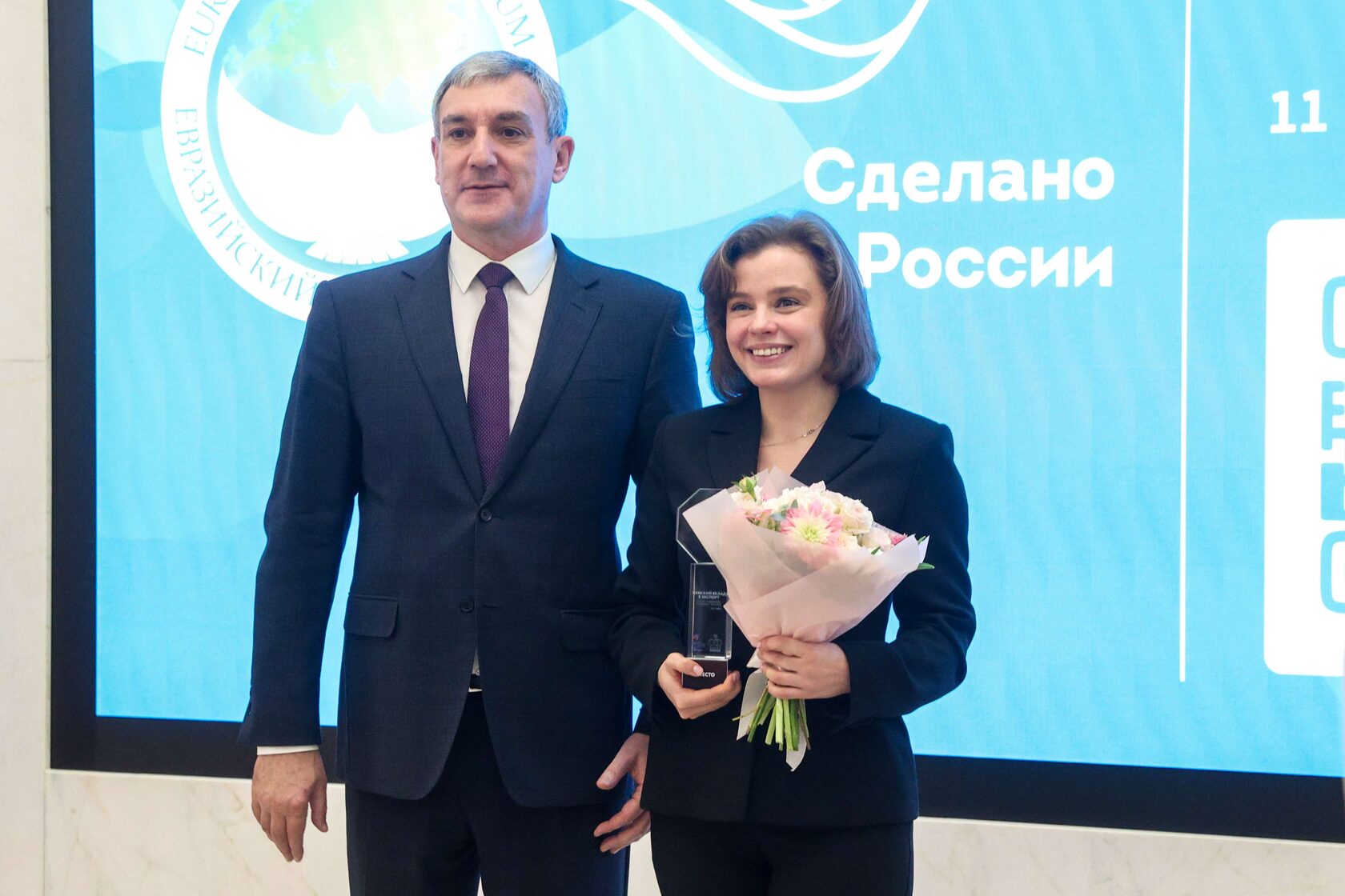 Приятно отметить и нашу победу в специальной номинации «Женский вклад в экспорт», которая оценивает рост количества женщин-экспортеров, успешно заключивших экспортные контракты. Награду получила директор ООО «Союз» Кудрина Алиса Анатольевна. Поздравляем Алису Анатольевну!